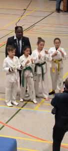 Nach monatelanger intensiver Vorbereitung und Trainings durften 11 junge Prüflinge ihre erlernten Techniken und traditionellen Formen vorführen und wurden von Trainer und DTU-Prüfer Komi Agpobletou bewertet.